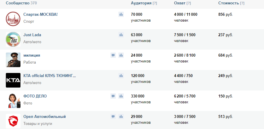 Маркет-платформа — по сути рекламная биржа внутри ВКонтакте. Вы можете добавить сообщество в каталог пабликов и предложить рекламодателям размещение. Со стороны рекламодателя платформа тоже выглядит как биржа: есть список групп, их статистика, стоимость размещения и поиск по фильтрам.