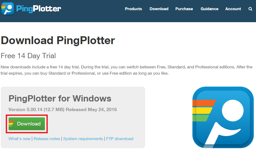 - Скачайте и установите Pingplotter на свой компьютер;