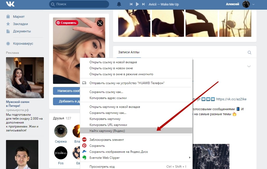 Проверяем фотографию через Яндекс. Кликаем по аватарке правой кнопкой мыши и выбираем пункт «Найти фотографию Яндекс» Если есть совпадения – перед нами фейк.