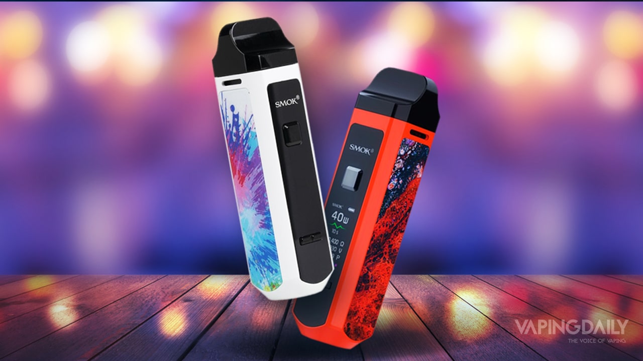 The SMOK RPM 40 Mod Pod combines a pod device and box mod. The device is small (25/25/29mm) and generates power from a 1500mah battery. It also generates wattage up to 40W. The vaping device is in seventeen different colors and has a cuboid shape.