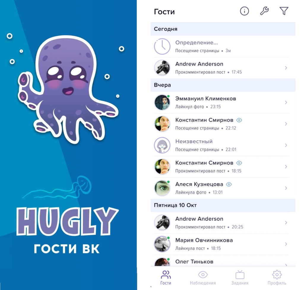 - Вы можете следить за активностью избранных друзей. Для этого добавляйте их в раздел «Наблюдение». Сервис будет отправлять push-уведомления, когда кто-то из списка зайдёт на сайт или совершит какое-то действие.