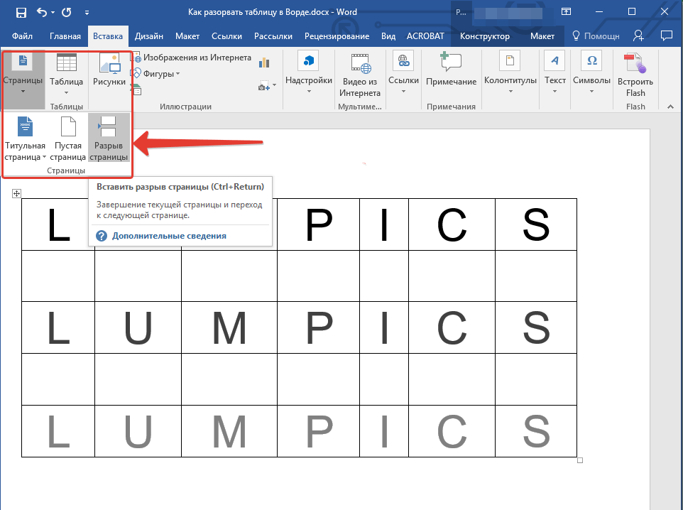 В Word разрывы страниц вставляются автоматически в соответствии с параметрами документа. Однако вы можете вставить разрыв вручную в нужном месте.