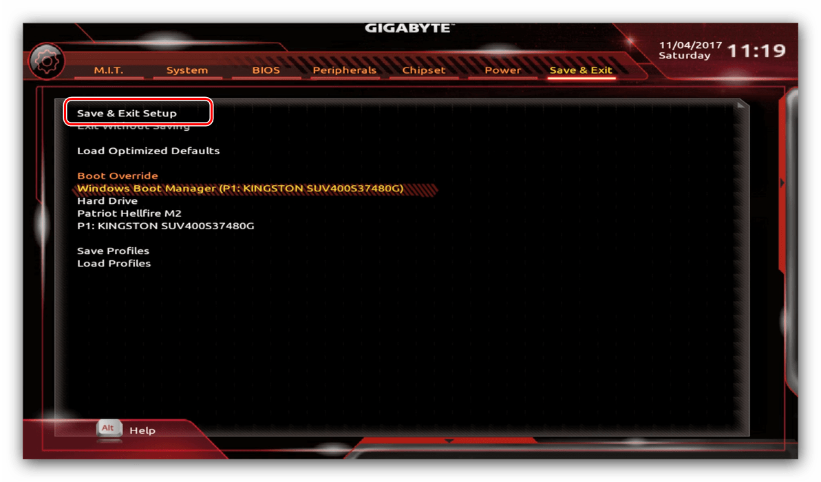 Сохранение параметров происходит после нажатия на пункт «Save & Exit Setup».