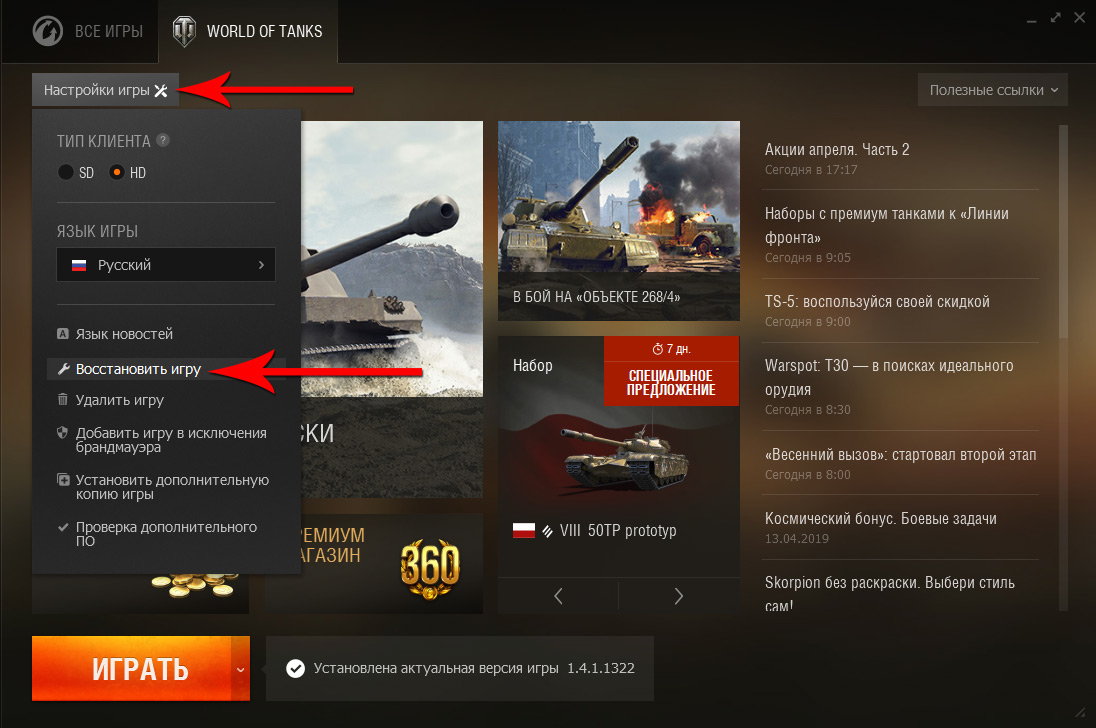 С помощью проверки целостности можно дать принудительную команду лаунчеру сделать проверку файлов игры. Если какой-то файл был повреждён или вообще отсутствует — он будет докачан из хранилища Wargaming.