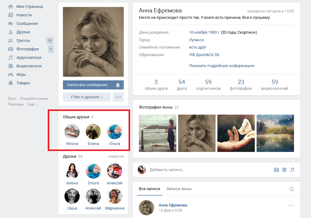 - Щелкните Общие друзья в левой колонке их профиля, чтобы увидеть список общих друзей.