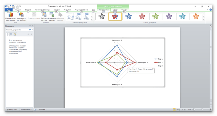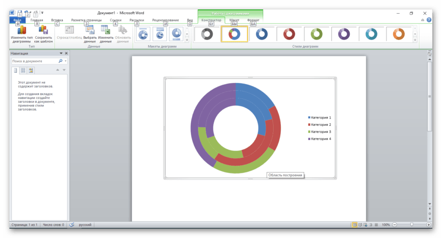 Кольцевая: подобная круговой, но может отображать несколько рядов данных.