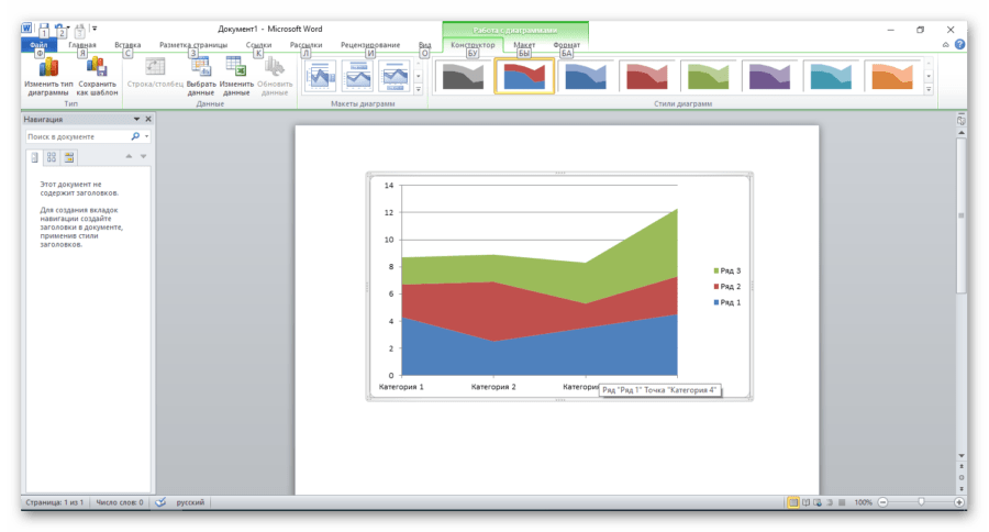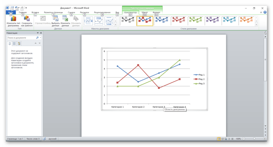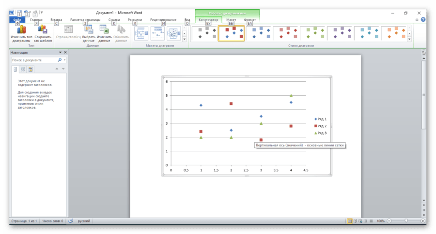 Возможна смена отображения рядов по столбцам или строкам. Каждую ось и название диаграммы можно задавать вручную. Также можно изменять масштаб, фон области диаграммы.