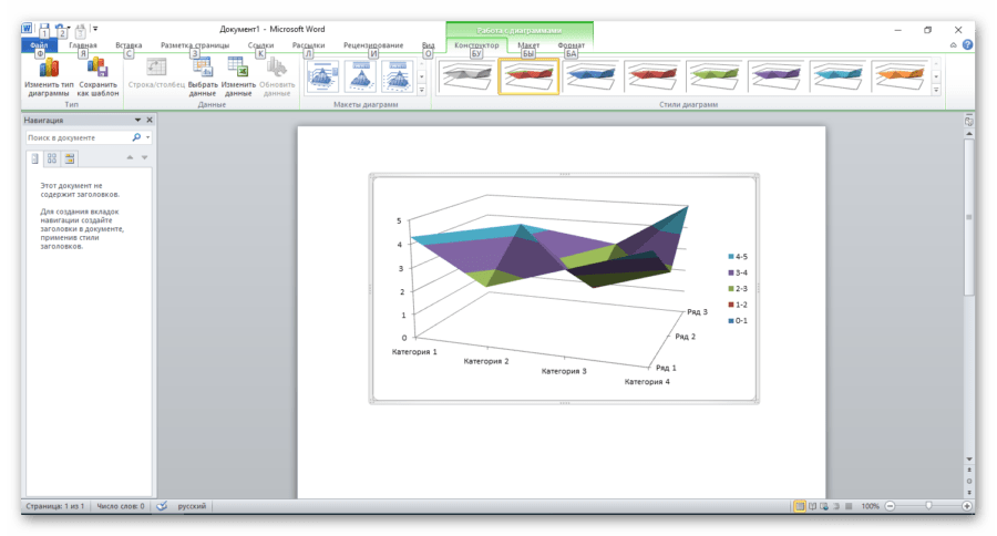 Поверхность: используется для отображения изменений значений по 2 измерениям. Здесь же расположена контурная диаграмма – вид сверху на поверхность.