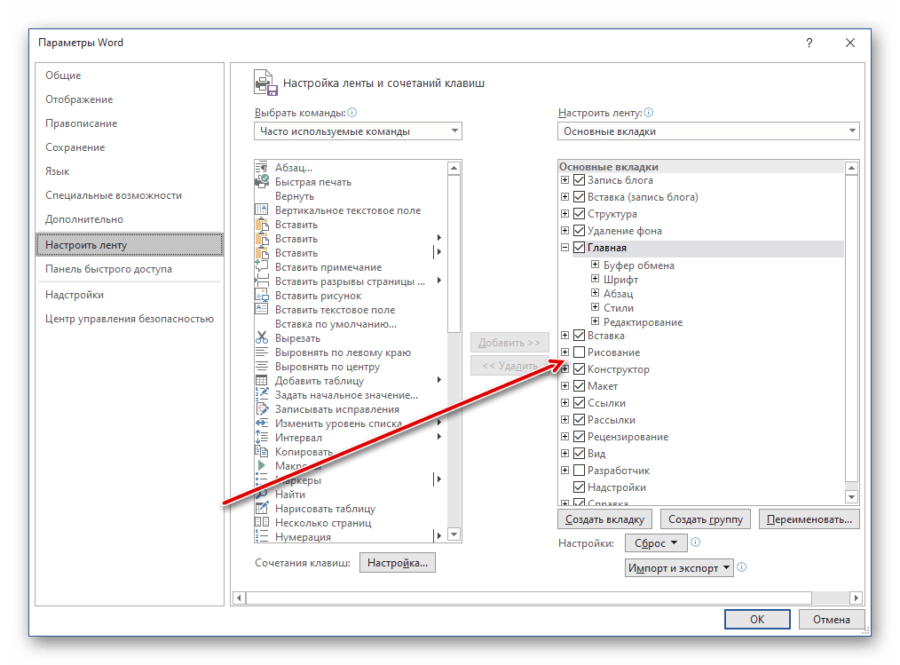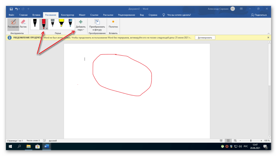 В версии 2019 года появилась возможность вставлять рисунки и обрабатывать их с помощью дополнительной вкладки «Рисование». Чтобы ее активировать, в меню «Файл» выберите «Параметры» — «Настройка ленты» и поставьте галочку рядом с «Рисование». В результате после вкладки «Вставка» появится «Рисование».