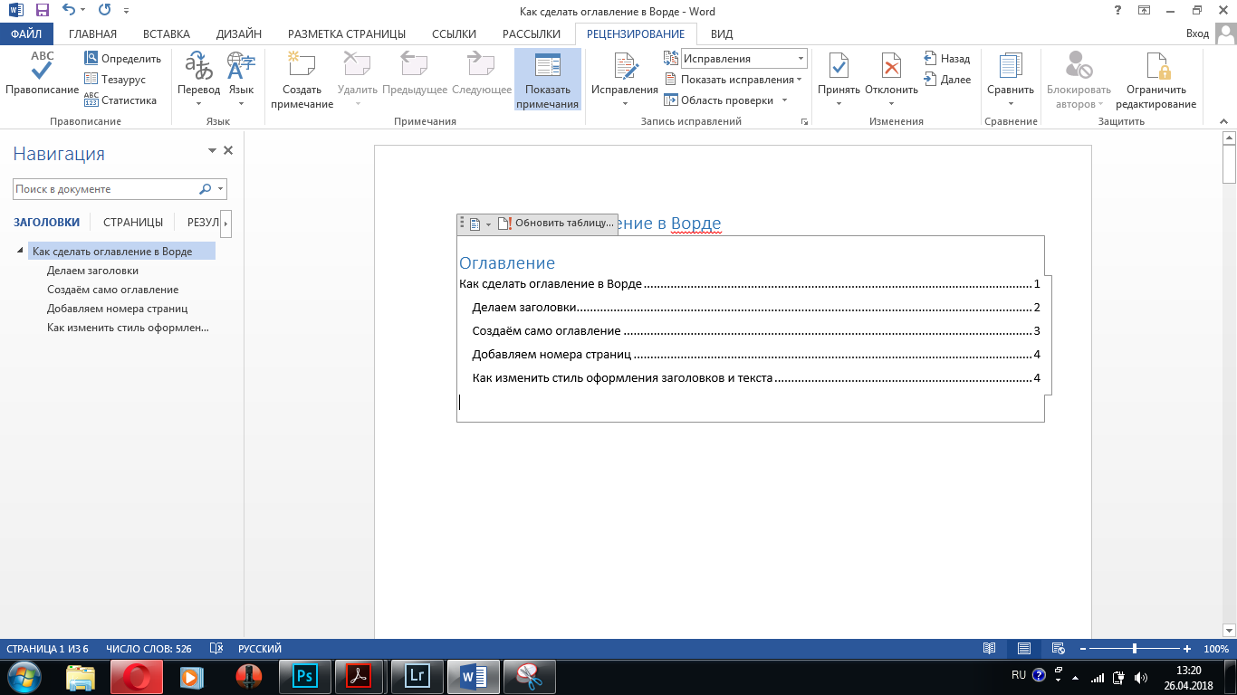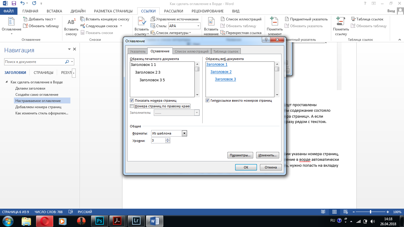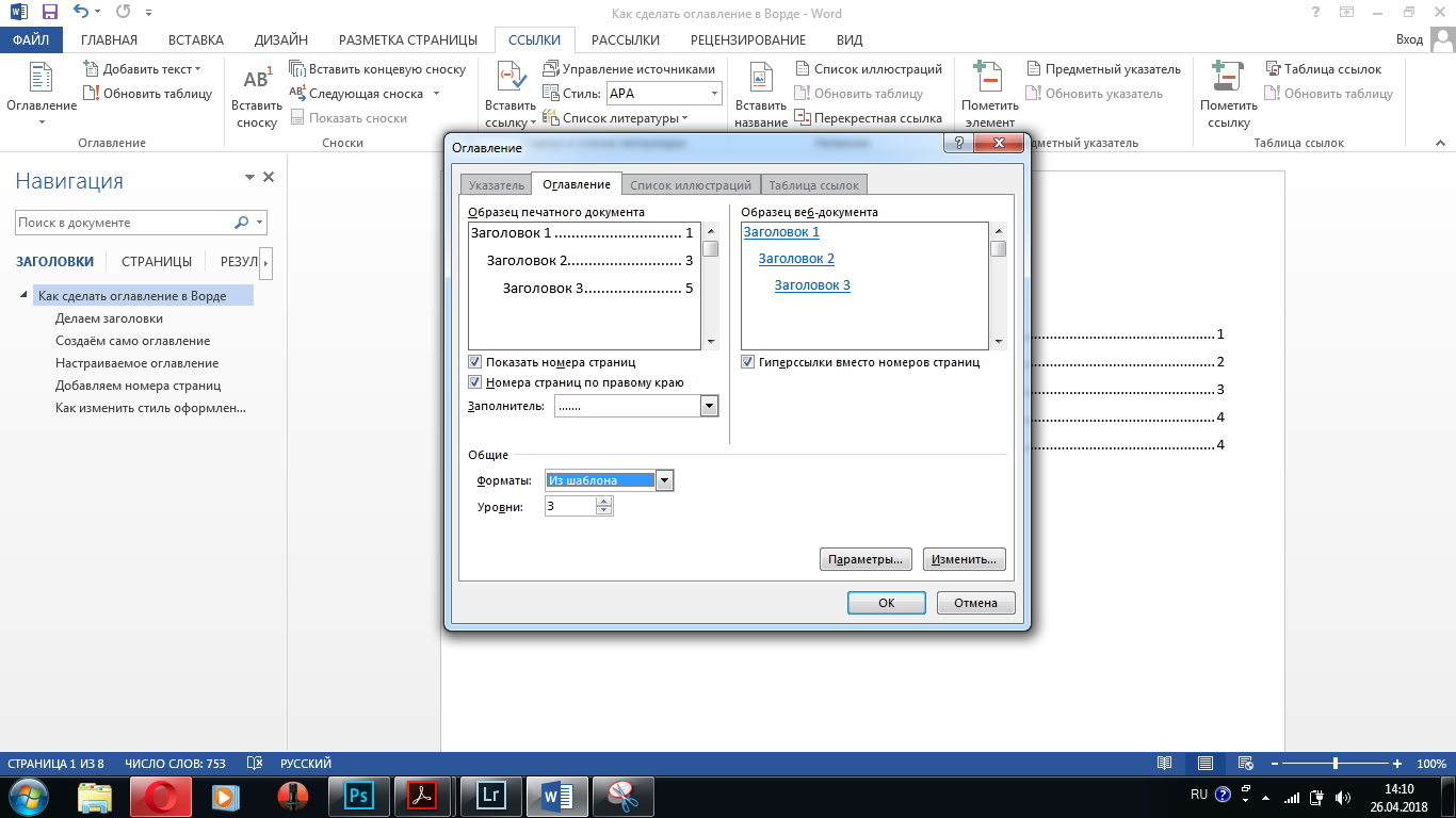 Как оформить оглавление в Ворде автоматически