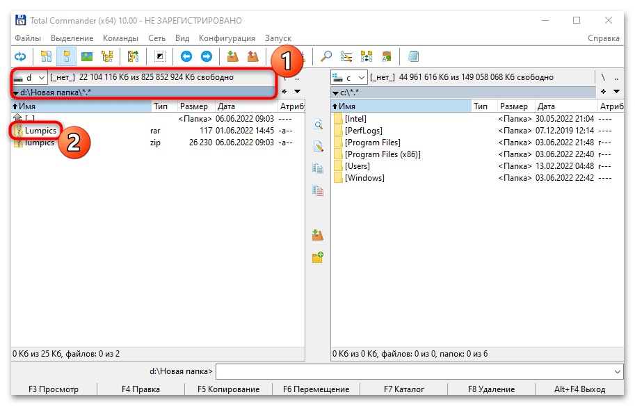 Выделите каталог, который нужно извлечь. Total Commander открывает как ZIP-архивы, так и RAR. Нажмите на клавишу «F5», чтобы скопировать данные.