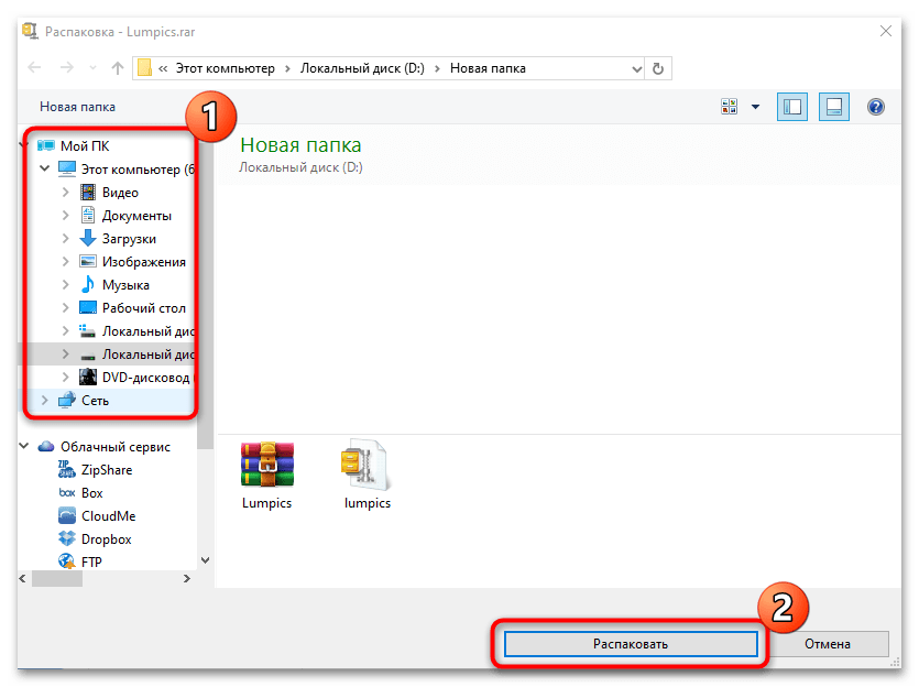 В новом окне укажите путь, затем нажмите на «Распаковать».