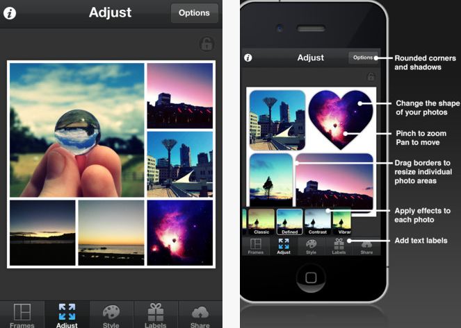 и другие приложения. Разница будет в простоте интерфейса и предоставляемых возможностях. Если вам потребуется в процессе создания коллажа из фото менять на телефоне очертания изображения, его размер, расстояние между снимками, выбирать между различными макетами и сохранять результат в высоком разрешении, то остановитесь на Moldiv, как сделали уже тысячи поклонников Apple. Менее взыскательным пользователям больше понравится Pic Stitch с его понятным набором инструментов и быстрым редактированием.