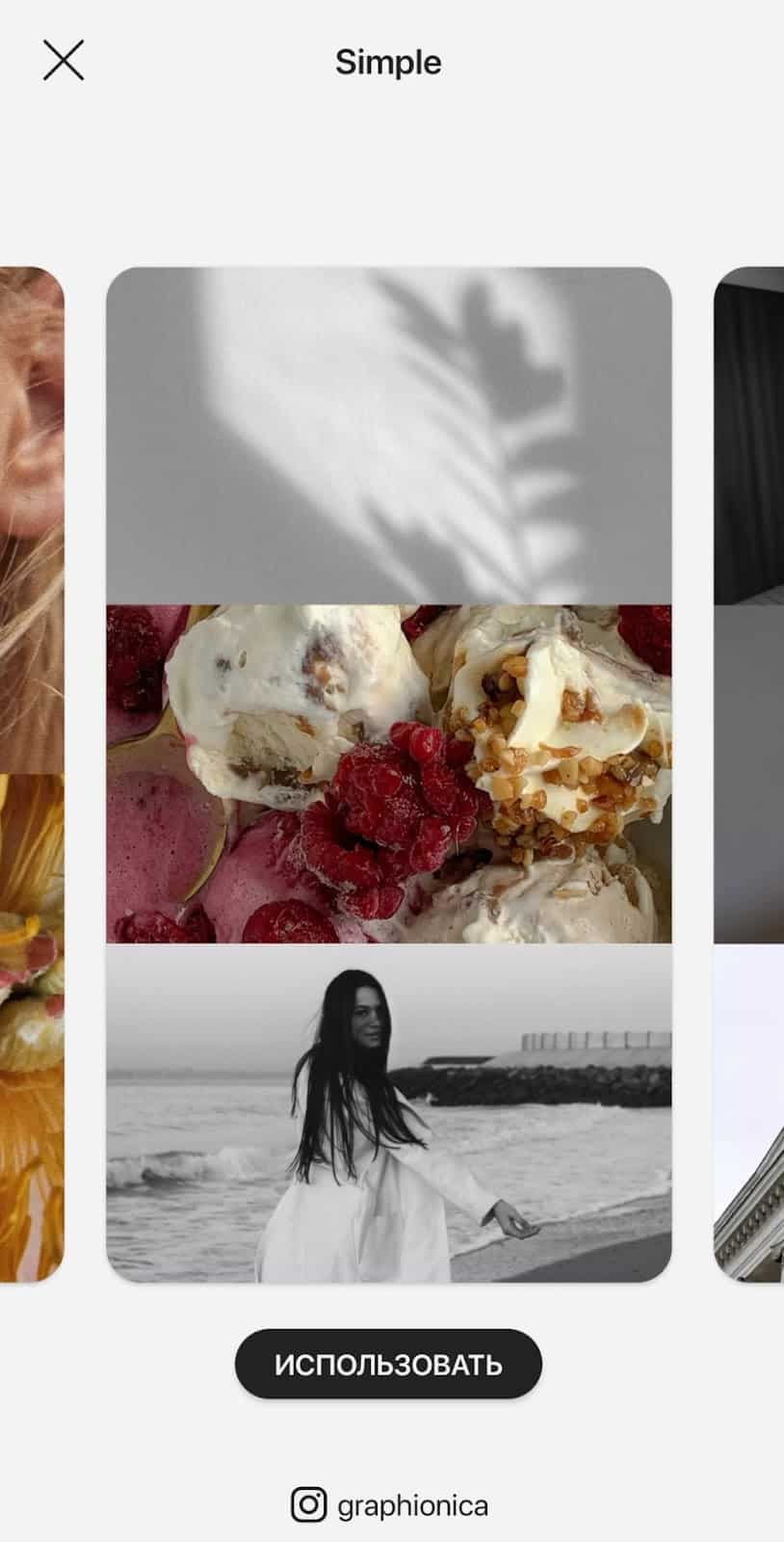 Коллажи для разных форматов, в том числе для сторис, предлагает Graphionica.