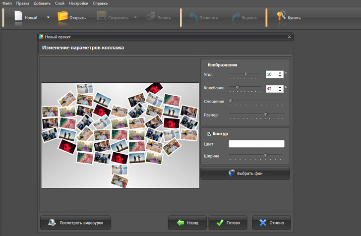 Кроме того, вы можете настроить вид коллажа. Для этого в панели управления выберите нужные параметры: размеры коллажа, отступы между фотографиями, рамки и т.д. Вы можете изменять эти настройки в любое время и просматривать результаты примененных изменений.