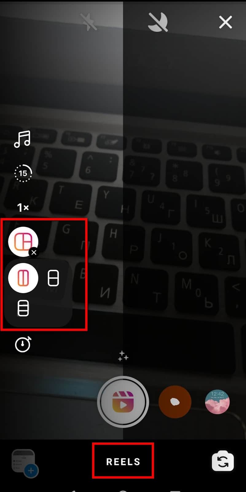 В Reels — коротких видео до 1 минуты — можно воспользоваться все той же кнопкой “Коллаж”: