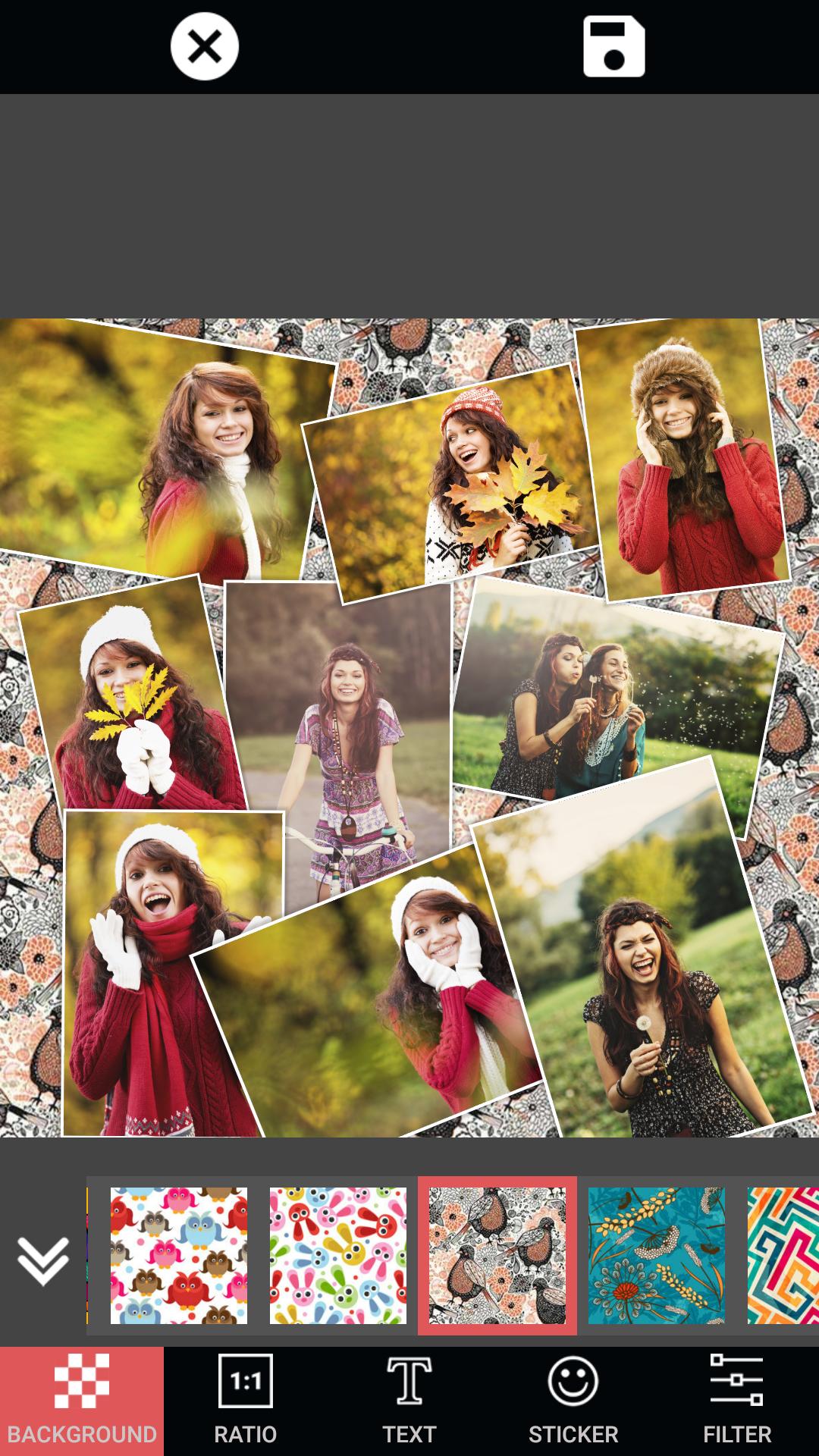 - Простой дизайн с дружественным пользовательским интерфейсом для создания фотоколлажа.