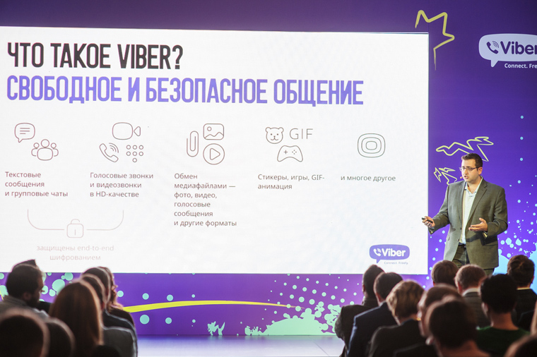 О Viber:Viber – один из пионеров мобильного месседжинга, предоставляющий возможность общаться при помощи голосовой и видео связи. Пользователи могут отправлять бесплатные текстовые сообщения, забавные наклейки, фотографии, видео и дудлы, обмениваться данными о местоположении в любой точке мира, совершать бесплатные звонки в HD-качестве и общаться с помощью сервиса Push-To-Talk. Viber доступен для iPhone, смартфонов и планшетов на платформе Android, Windows Phone, BlackBerry, Blackberry 10, Windows, Windows 8, Mac, Linux, Symbian, Nokia S40 и для устройств на платформе Bada и работает в сетях 3G/4G или по Wi-Fi. Более 460 миллионов уникальных пользователей и 608 миллионов зарегистрированных пользователей в 193 странах мира используют Viber. Офисы компании открыты в 11 ключевых городах мира (в том числе и в Москве). Viber входит в Rakuten Group.
