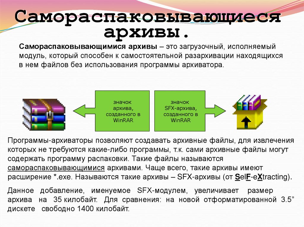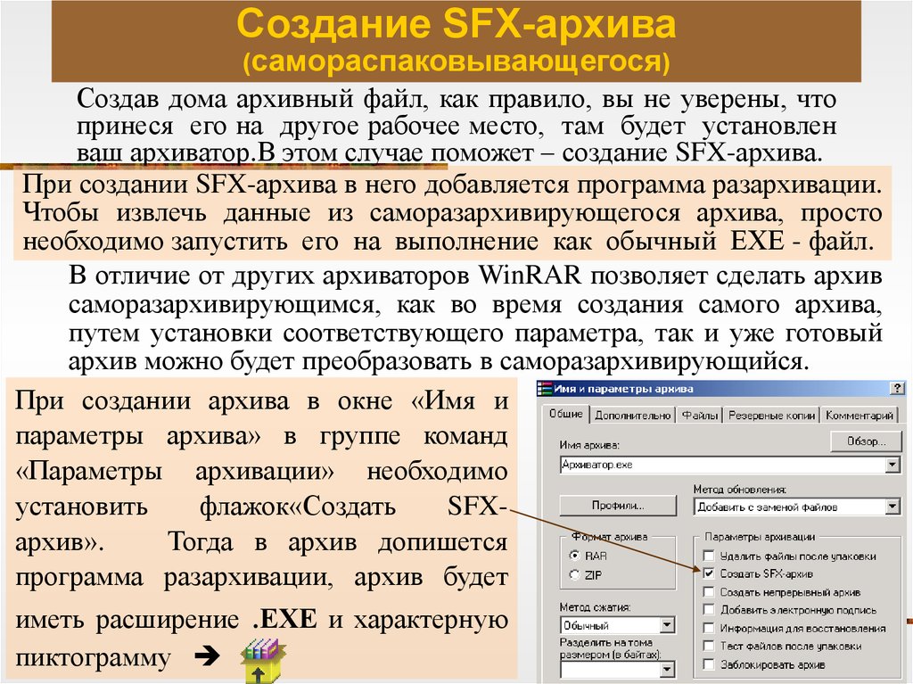 Самораспаковывающийся архив (SFX) удобен, когда вам нужно скопировать файлы