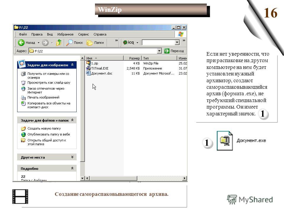 Примеры программ, способных создавать самораспаковывающиеся архивы: