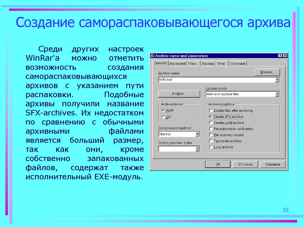 | Преимущества sfx архивов: | Недостатки sfx архивов: |