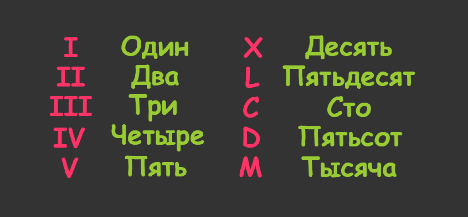 Уже лучше, но данная система, как и единичная, — непозиционная. Это значит, что положение цифры в записи никак не связано с разрядностью (единицы, десятки, сотни, тысячи и так далее). Классический пример — римская форма записи: