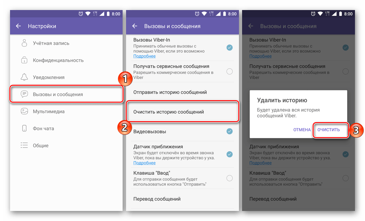 Тем пользователям Viber, которые ищут метод удаления абсолютно всех когда-либо полученных и переданных через мессенджер посланий без исключения, можно порекомендовать задействовать описанную ниже функцию приложения-клиента для Android.