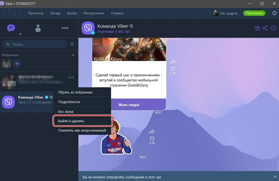 Как удалить чат в Viber полностью