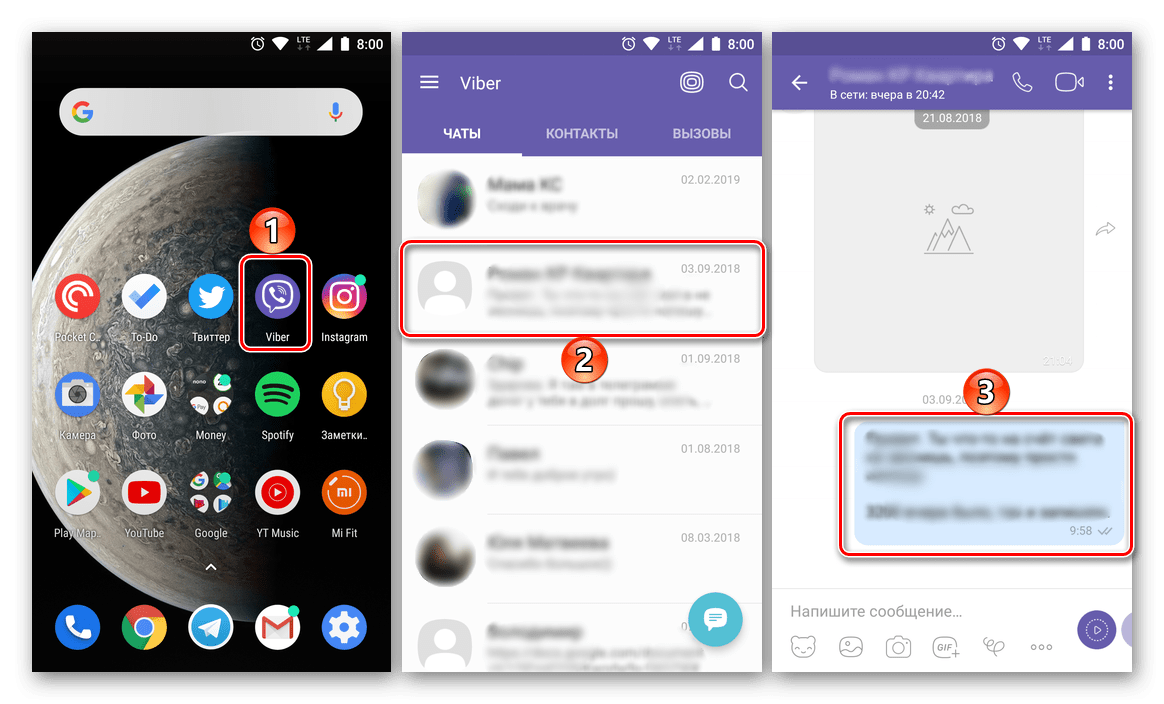 - Открываем Viber для Android, переходим в беседу, содержащую более ненужное или нежелательное сообщение.
