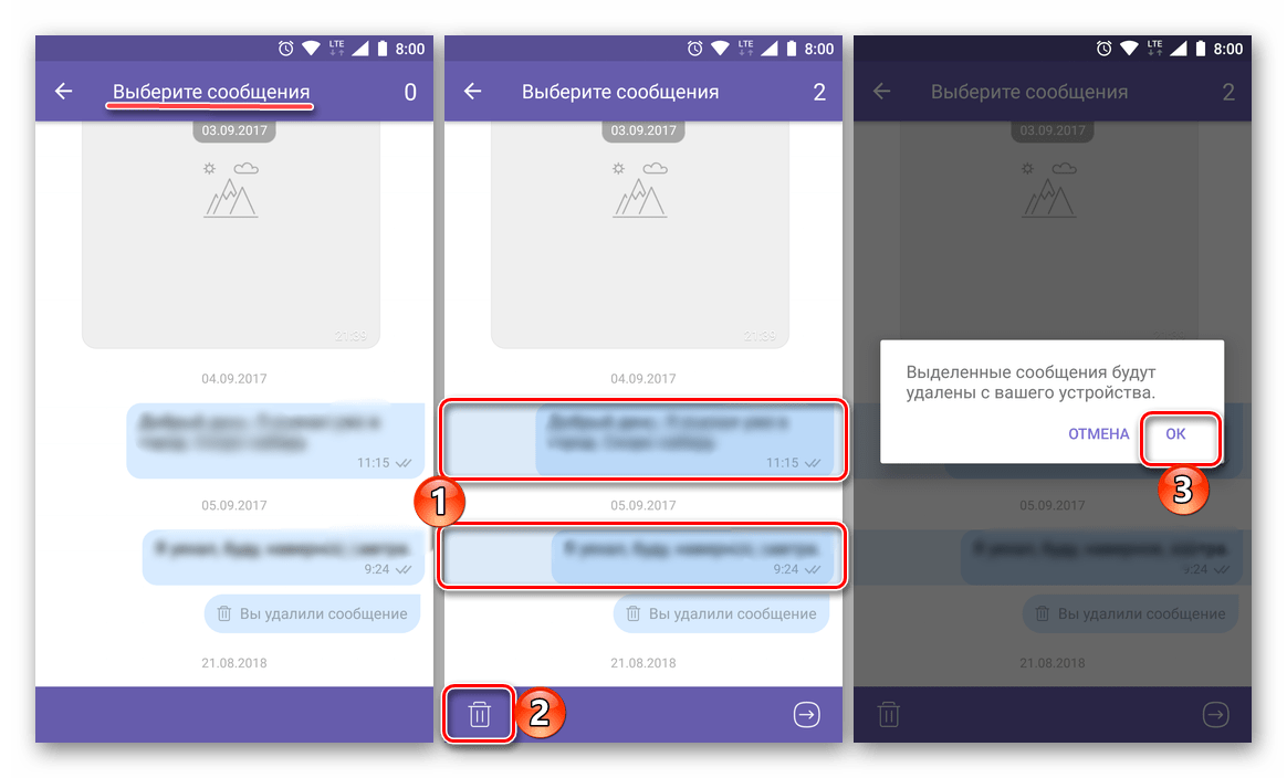 Как удалить сразу одно или несколько сообщений в чате, сообществе или группе Viber