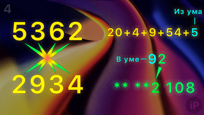 Когда научитесь на лету умножать и складывать элементарные значения, вставайте на продвинутый уровень: расчёты четырёхзначных чисел.
