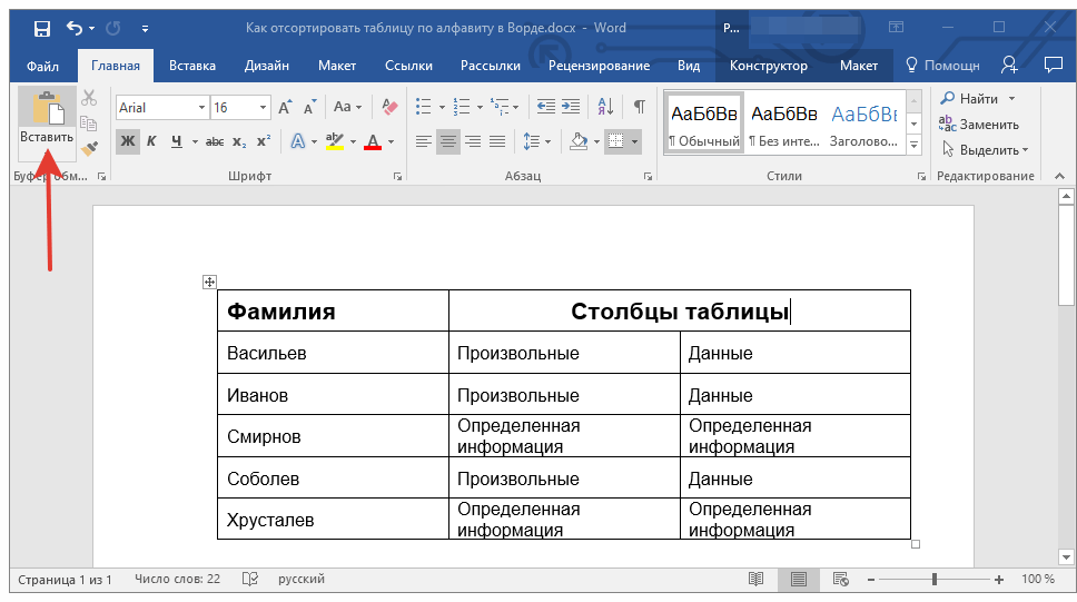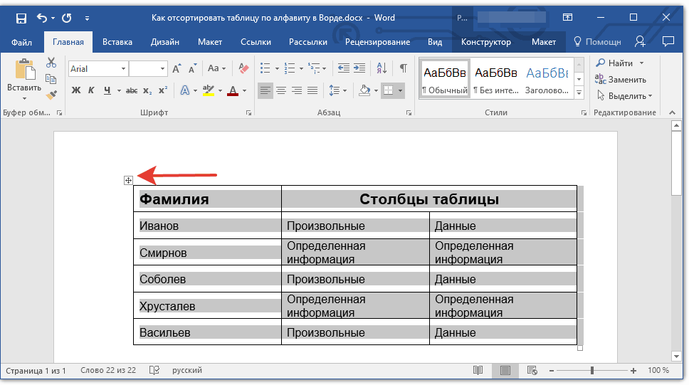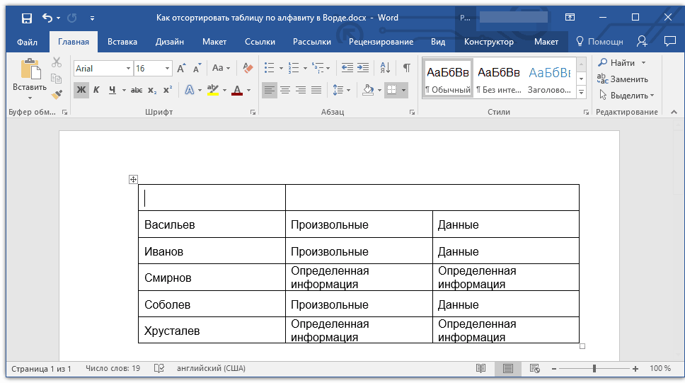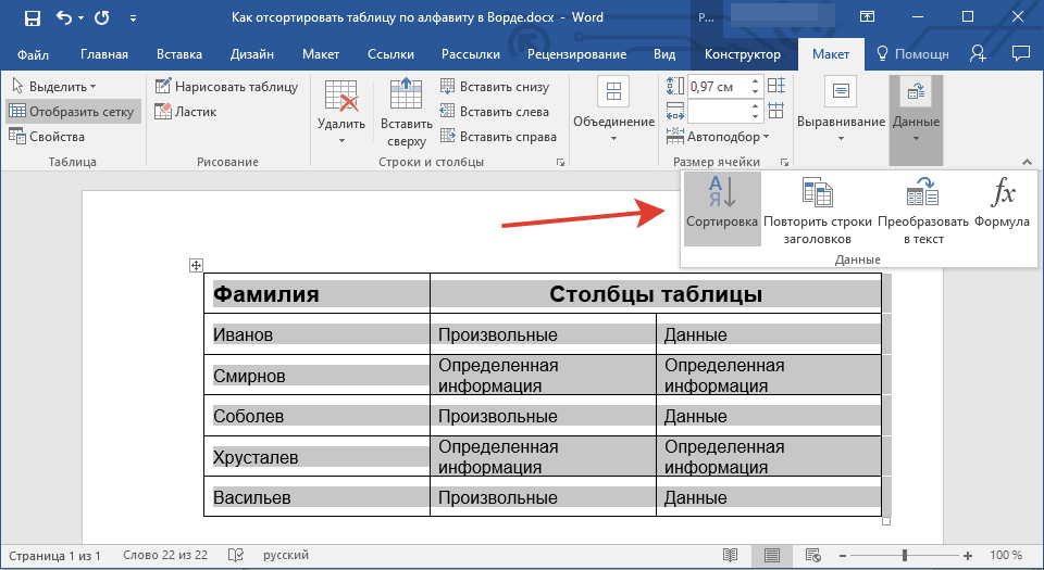 Как в редакторе «Word» отсортировать данные в таблице по алфавиту?
