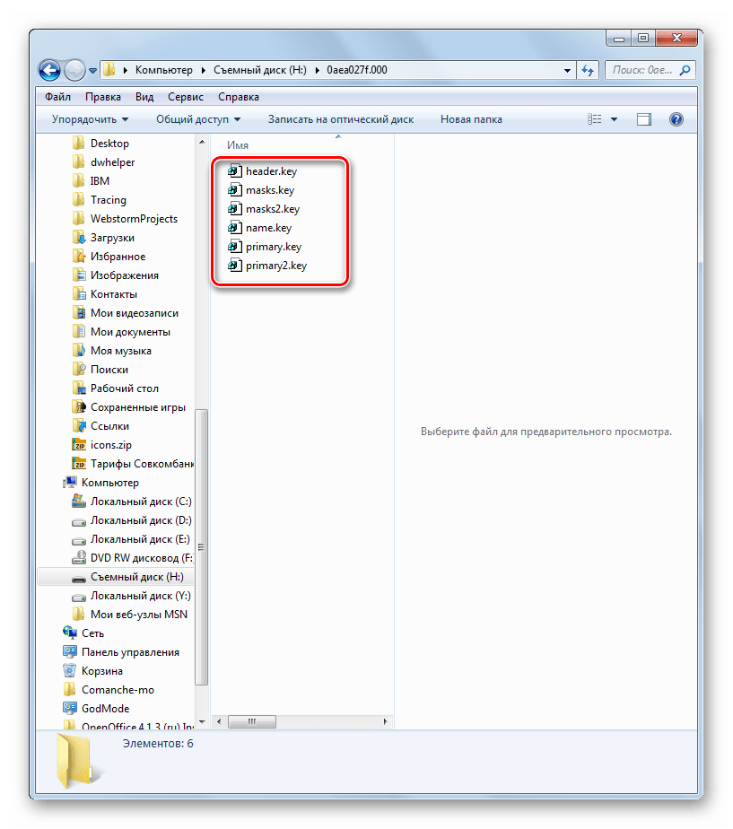 Внимание! Вставку нужно производить в корневую директорию USB-носителя, так как в обратном случае работа с ключом в дальнейшем будет невозможна. Также рекомендуем не переименовывать при переносе название копируемой папки