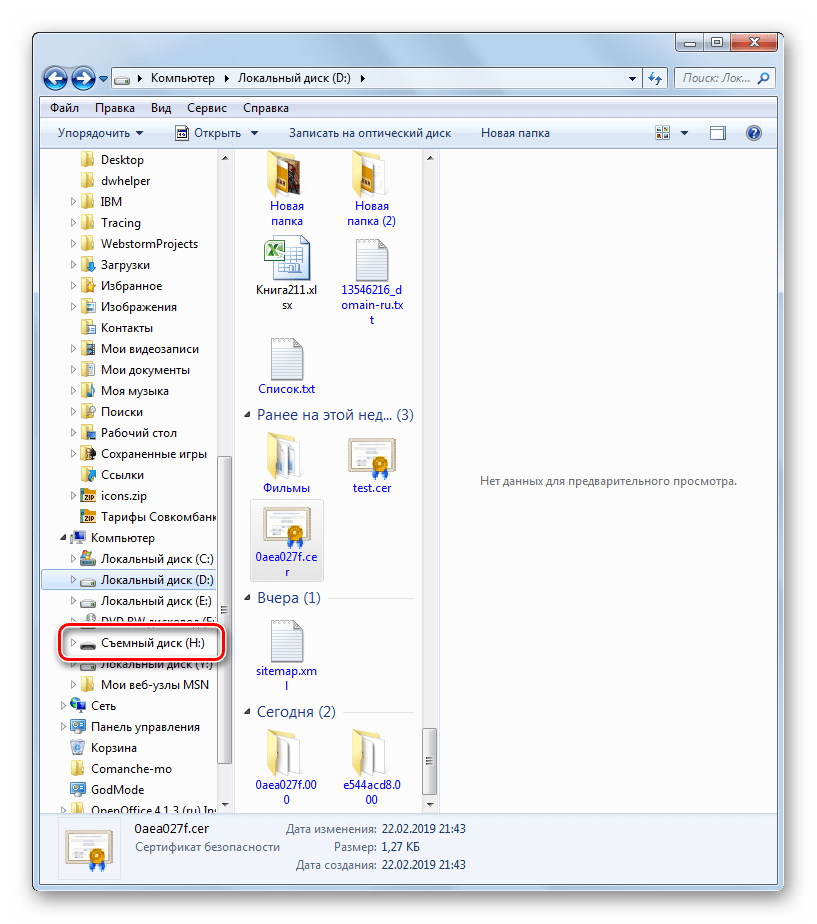 - Найдите флешку с установленным сертификатом и откройте ее.
