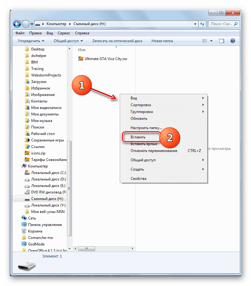 Щелкните ПКМ по пустому месту в открывшейся директории и выберите пункт «Вставить».
