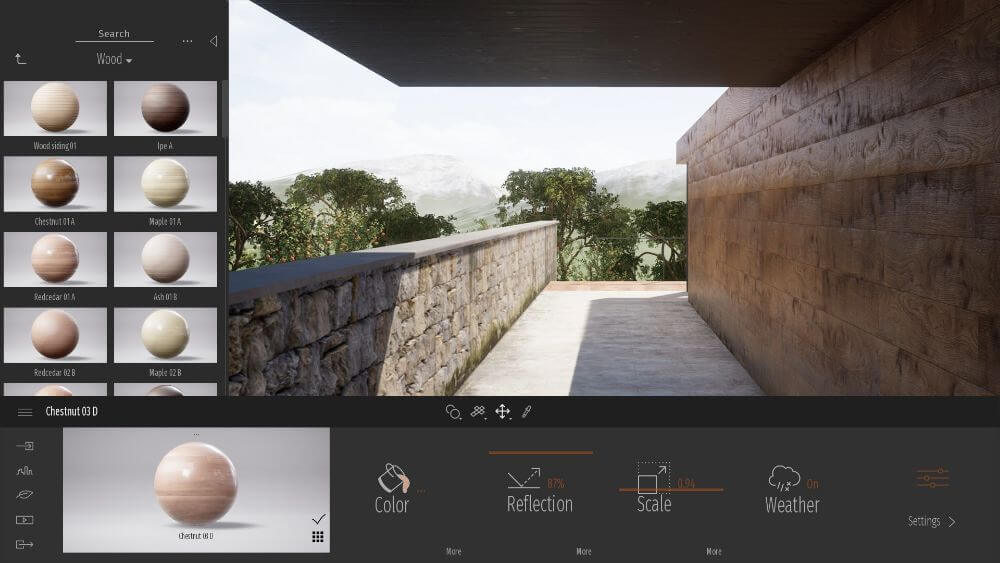 Реалистичные материалы и текстуры: Twinmotion предлагает широкий выбор готовых материалов и текстур, которые могут быть применены к моделям из SketchUp. Это позволяет создавать реалистичные и привлекательные визуализации со сложными поверхностями и текстурами.