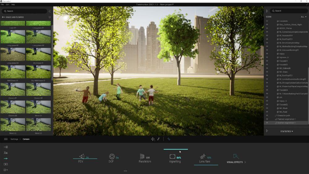 - Вы можете не только добавлять одиночный персонаж, толпу, машину или несколько полос транспортных средств, но и определять их маршруты, направление и скорость, а также активировать их движение.