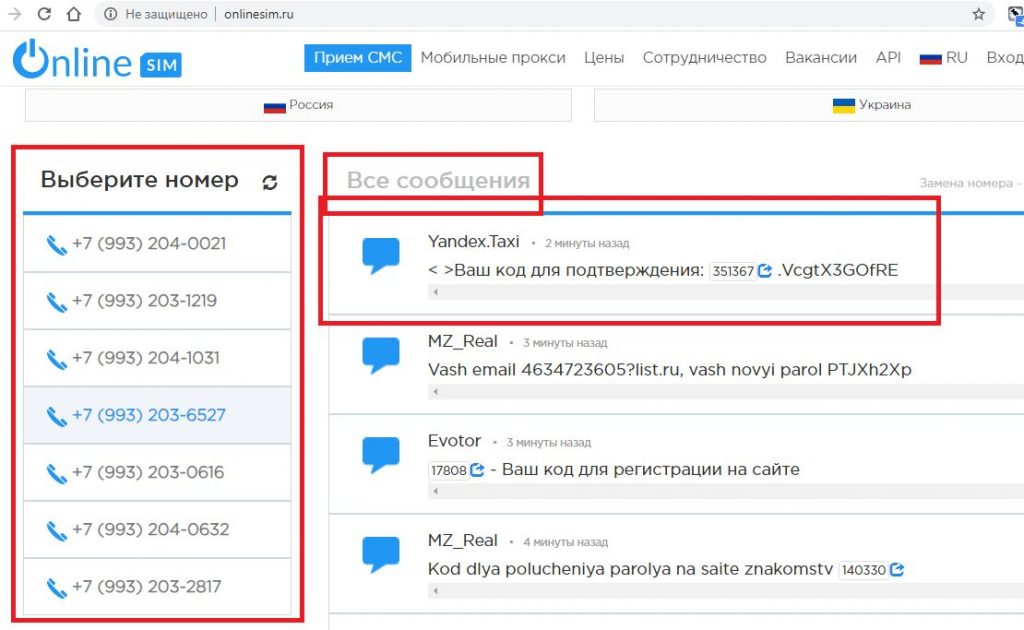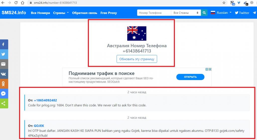 Выбираете страну, далее выбираете номер телефона нажав на него, после чего открывается страница с текстами смс других пользователей. Копируем выбранный номер и вставляем в регистрационное поле Вк, если выбранный номер не использовался, то в этот список смс текстов придет и ваша смс с кодом от Vk: