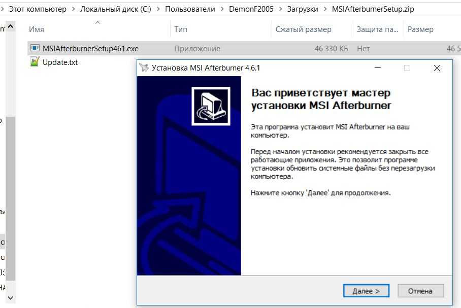 Как только MSI Afterburner будет установлен, начнется установка RivaTuner Statistics Server. Устанавливаем обязательно, не меняя параметров установки, просто нажимая “Далее”.
