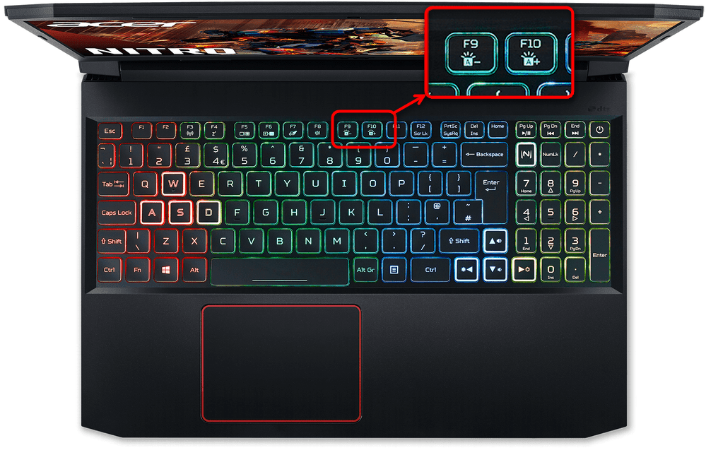 Ноутбуки компании Acer являются одними из самых популярных в мире. Выпускаются как офисные модели с наличием одноцветной подсветки, выполненные в строгом стиле, так и игровые, оснащенные RGB-подсветкой по секторам или имеющие диоды для каждой клавиши отдельно. Сама модель практически не влияет на то, как именно будет включаться подсветка, поскольку разработчики стандартизируют настройки для всего ряда. Информацию о том, как найти нужную клавишу и вообще определить наличие подсветки, вы найдете в материале ниже.