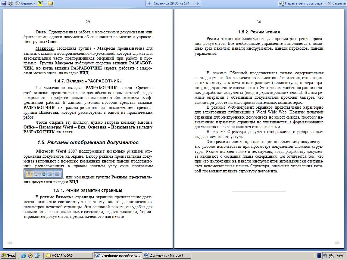 1.6. Режимы отображения документов на экране