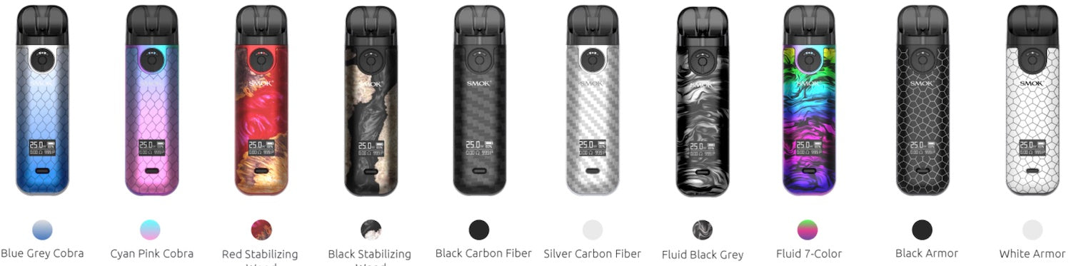 - SMOK Novo 4 Kit $24.99. The SMOK Novo 4 is available in 10 terrific colors, and it comes with a pod and two coils. Since the SMOK Novo 4 pod has a removable coil, you can continue using the same pod indefinitely.