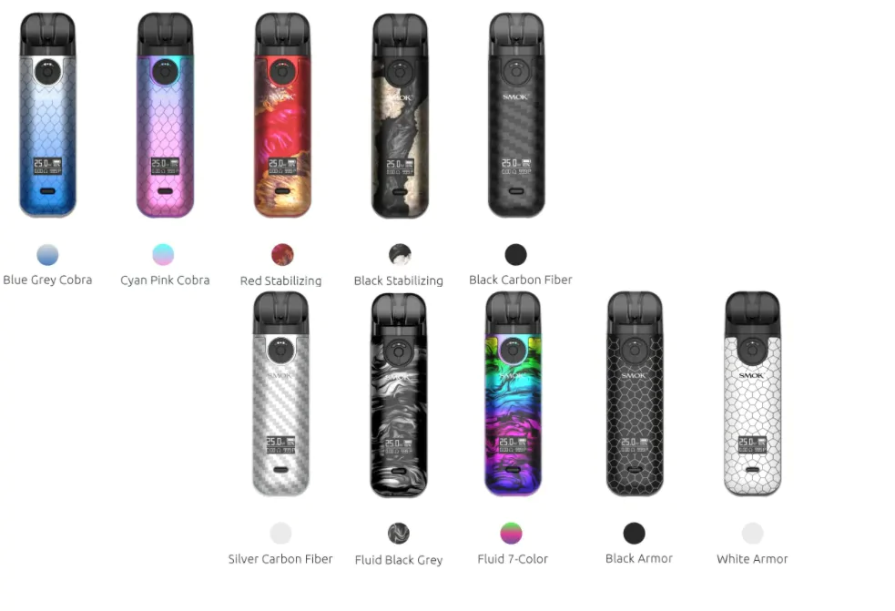 Смок Ново 4 обладает широкой палитрой цветов самого девайса