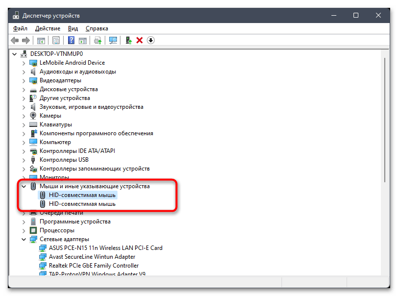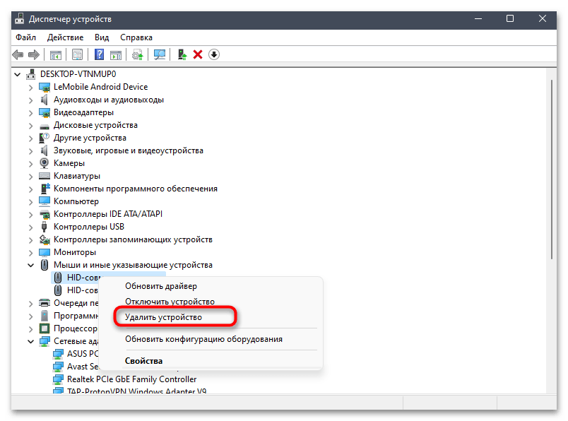 Сначала стоит попробовать вместо текущего драйвера тачпада выбрать один из стандартных, который уже входит в операционную систему, но пока что не применен для вашего указывающего устройства. Осуществляется данное действие через «Диспетчер устройств» и выглядит следующим образом: