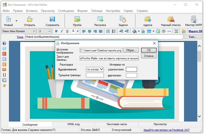 Вставить картинку в HTML письмо с помощью ePochta Mailer