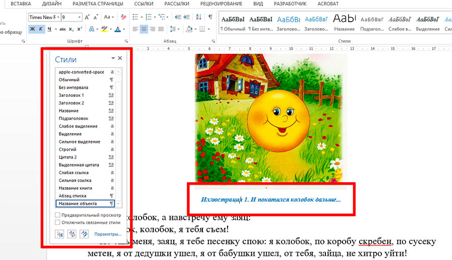 Попробуем вставить в текст вторую иллюстрацию с подписью? Как видите, надпись автоматически изменила свой стиль на тот, что мы только что задали.