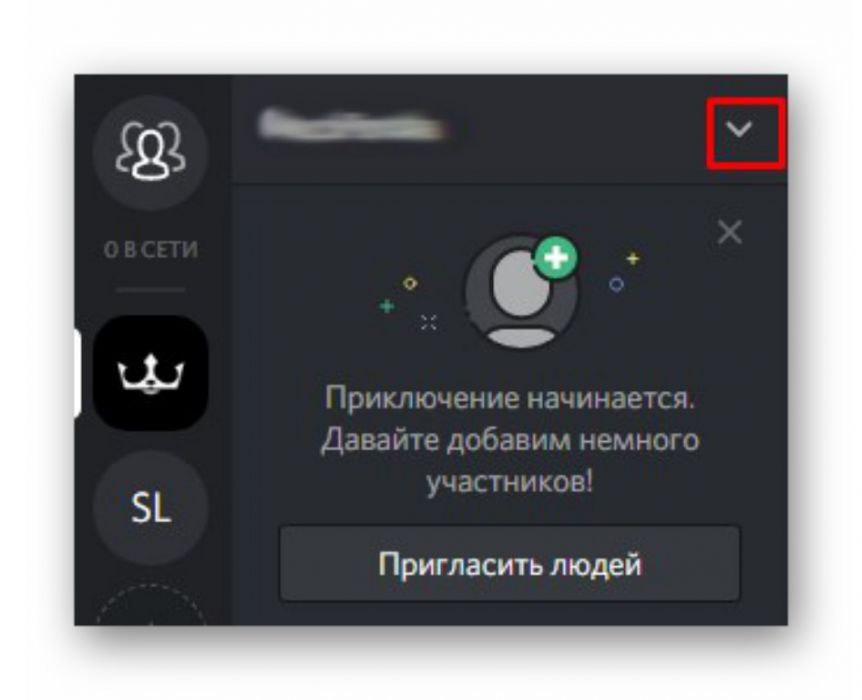 2. Нажать на изображение треугольника, расположенного рядом с названием сервера.