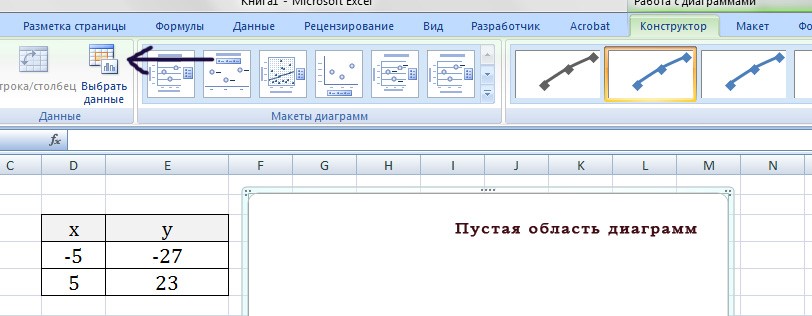 В итоге выводится свободная диаграммная зона. Следует нажать клавишу выбора данных: