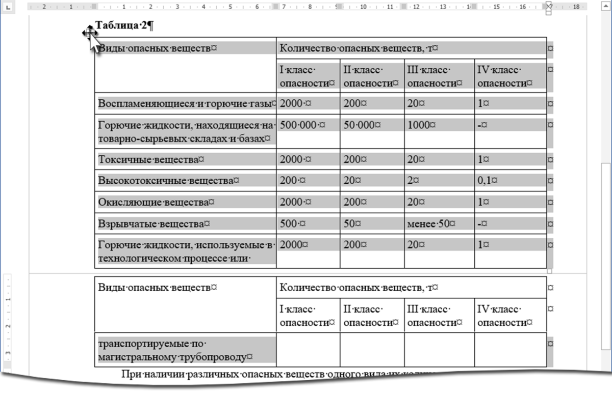 Примечание: Для переноса шапки таблицы, состоящей из двух и более строк, обязательно необходимо выделять и первую строку.