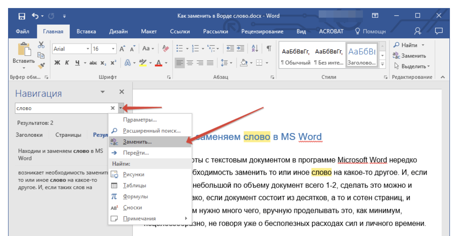 Чтобы заменить все вхождения выбранной буквы на новую, выполните следующие шаги в программе Microsoft Word:
